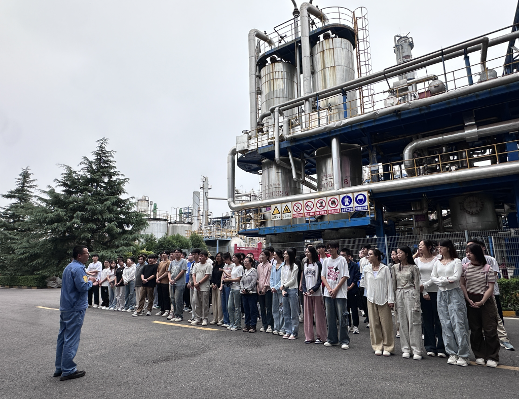 BB贝博艾弗森师生乘车来到齐翔腾达北区工业园,化工二厂、三厂负责人分别向大家介绍厂区环境、生产装置、生产工艺流程等概况。