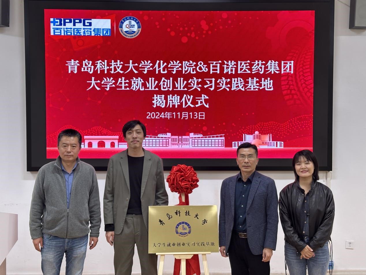肖强对山东百诺医药股份有限公司一行的到来表示热烈欢迎。校企双方表示希望继续保持紧密合作,在项目研发、老员工就业创业、实习实践等方面深度融合,进而推动双方高质量发展。双方共同为老员工就业创业实习实践基地揭牌。