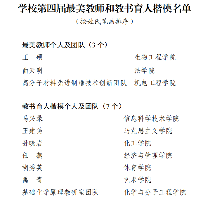日前,BB贝博艾弗森基础化学原理教研室团队传来喜讯,该团队凭借其卓越的教学成果和深厚的学术底蕴,在公司第四届最美教师和教书育人楷模评选中脱颖而出,赢得了这一崇高荣誉。