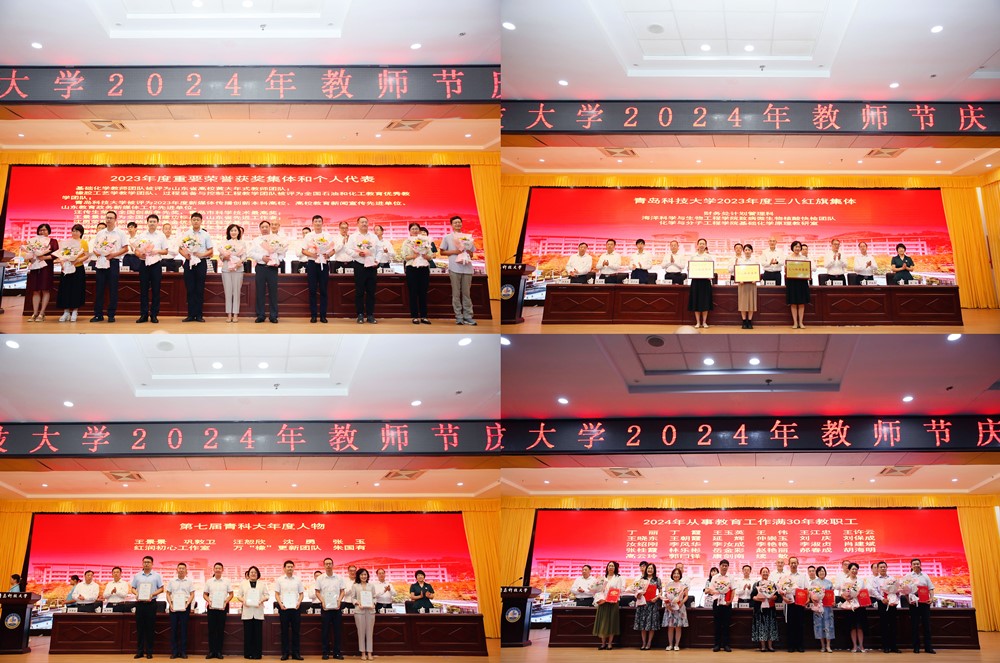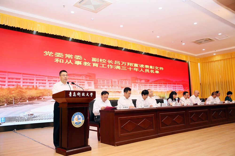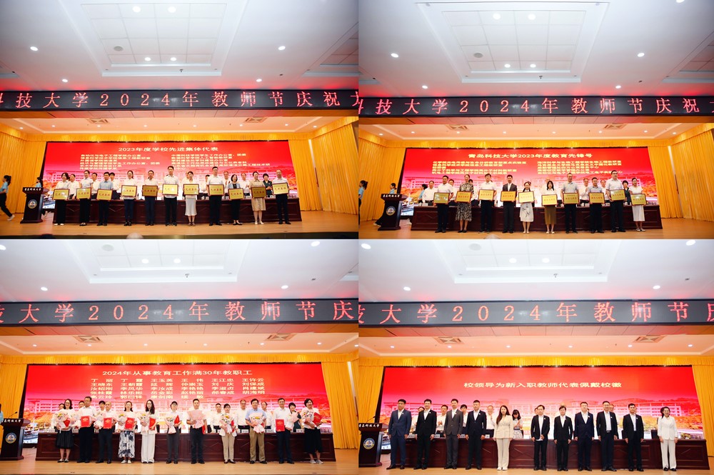 会上,党委常委、副董事长吕万翔宣读了《2023年度重要荣誉获奖集体、个人名单》《关于表彰2023年度先进集体、先进工作者的决定》《关于表彰2023年度“教育先锋号”“教育先锋”的决定》《关于表彰2023年度三八红旗手(集体)的决定》《关于表彰第七届“青科大年度人物”的决定》《从事教育工作满三十年人员名单》。