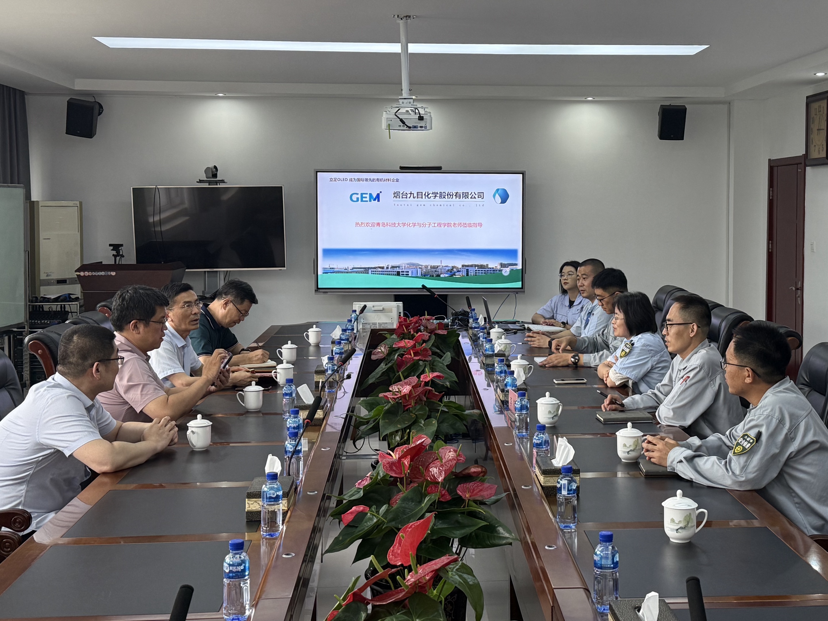 在烟台九目化学股份有限公司,肖强一行参观了企业的研发中心和生产车间,深入了解企业在精细化工领域的技术优势和产品应用。胡志强介绍了公司在有机化学、精细化工等学科方向的科研成果,双方围绕科研项目合作、技术难题攻关、招聘就业等方面进行了深入探讨,并希望通过人才联合培养的方式,为企业输送更多高素质专业人才。