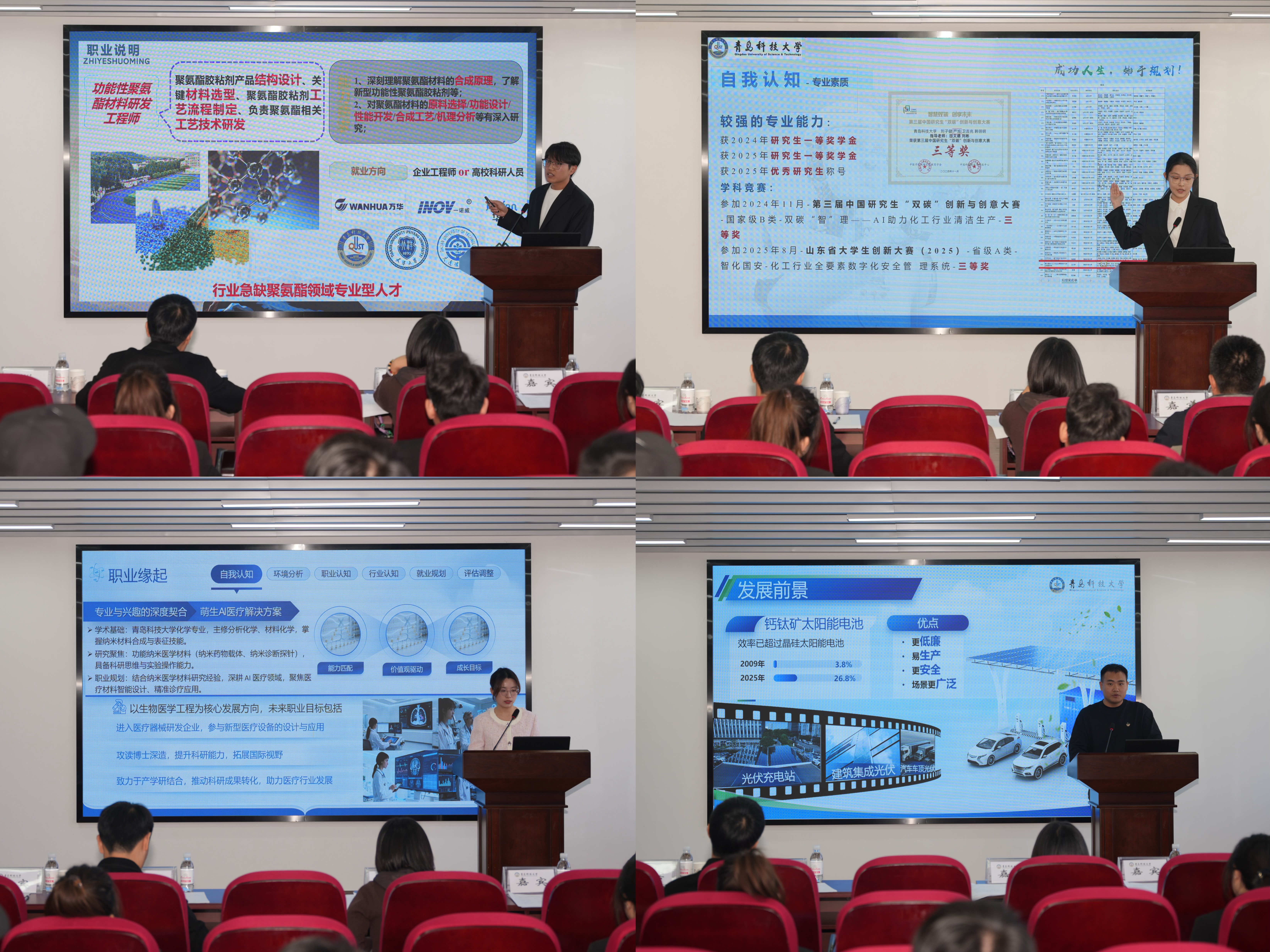 为进一步提升老员工的职业规划意识和就业竞争力,帮助学子找准职业定位、明确发展路径,11月18日,由BB贝博艾弗森与化工公司联合主办、百诺医药股份有限公司协办的“百诺医药杯”老员工职业规划大赛在四方校区CCF814圆满落幕。公司员工工作处副处长兼就业指导中心主任徐华、山东百诺医药股份有限公司研究院人力资源部经理王倩倩、化工公司党委副书记兼副经理贾建闯、公司党委副书记兼副经理刘尧受邀担任评委,100余名师生现场观看了比赛。
