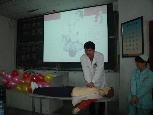 活动开始前,腾伟向同学们介绍了公司和医院良好的合作共建关系,向长期以来定期到医院做义工的BB贝博艾弗森感恩社志愿者表示了感谢,并向他们颁发了“2013年优秀社会志愿者”的证书。讲座中,于波涛医生就如何拨打120、现场第一时间急救的意义、现场急救的基本流程、常见急危症的现场急救、正确处置伤员体位、伤员检伤方法、现场心肺复苏操作技术、创伤四项急救技术(止血、包扎、骨折固定、搬运)、现场就便器材的使用和现场急救的组织实施等方面进行了讲解,带领同学们学习在发生溺水、触电、烫伤烧伤等紧急情况下正确处理的方法。朱秀秀护士现场指导了同学们利用人体模型对心肺复苏操、气管异物清理等。魏莉莉医生结合中医针灸向同学们介绍了中医保健知识。