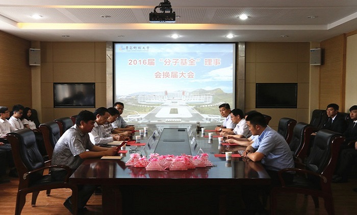 6月24日下午,BB贝博艾弗森“分子基金”项目2016届理事会换届大会暨捐赠仪式在四方校区一号行政楼第一会议室举行。副董事长、教育发展基金会理事长韦殿华,公司办公室副主任、教育发展基金会秘书长聂广明,公司党政领导、分团委全体老师以及BB贝博艾弗森2016届毕业生代表参加了仪式。仪式由公司党总支副书记孙晓刚主持。