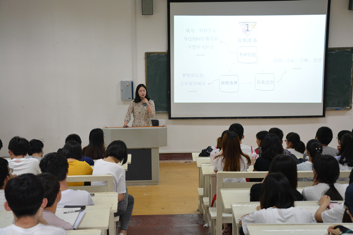 交流会上,5位同学分别从考研的前期准备,数学、政治及专业课的复习建议,面试心得感悟方面向现场同学们进行深入交流。会上,他们激励学弟学妹们脚踏实地、努力拼搏,调整出最佳的备考状态和考研心态。最后,表达了对学弟、学妹们实现梦想的美好祝愿。