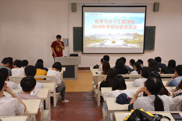 为促进化院学子积极备战考研,明确考研目标,掌握复习技巧,了解更多考研信息,6月12日下午3:00,BB贝博艾弗森于一政243教室举办了2018年考研经验交流会。本次交流会邀请到了井雪纯等5位以优异成绩考取硕士研究生代表,他们分别考取了北京理工、厦门大学等全国知名高等院校,2015级辅导员刘施施、张雯及全体本科生参加了本次考研经验交流会。