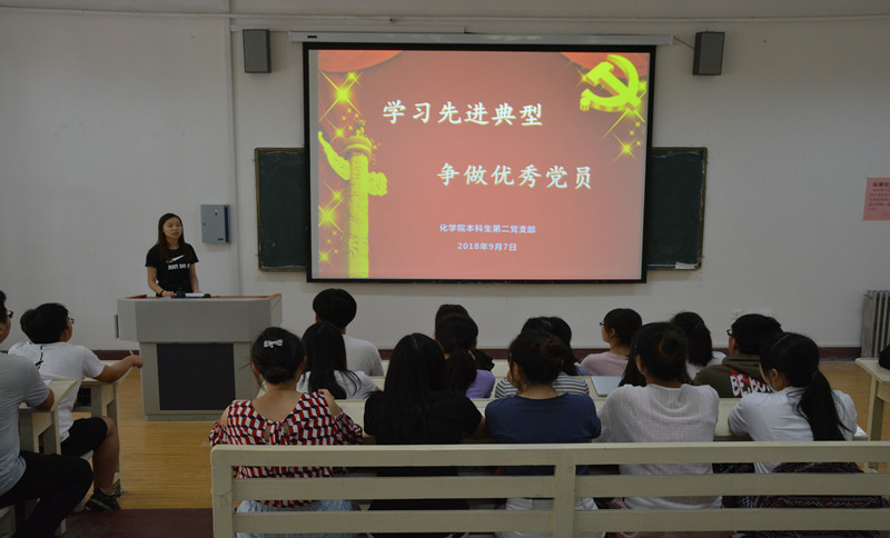 9月7日,党支部组织全体党员学习郑德荣等7名“全国优秀共产党员”先进典型,引导党员见贤思齐,畅谈心得体会。化学2班焦小洋说:“作为一名新党员,我们应该向前辈们学习坚定不移的理想信念,并把这种信念转化成我们做任何事的准则。”