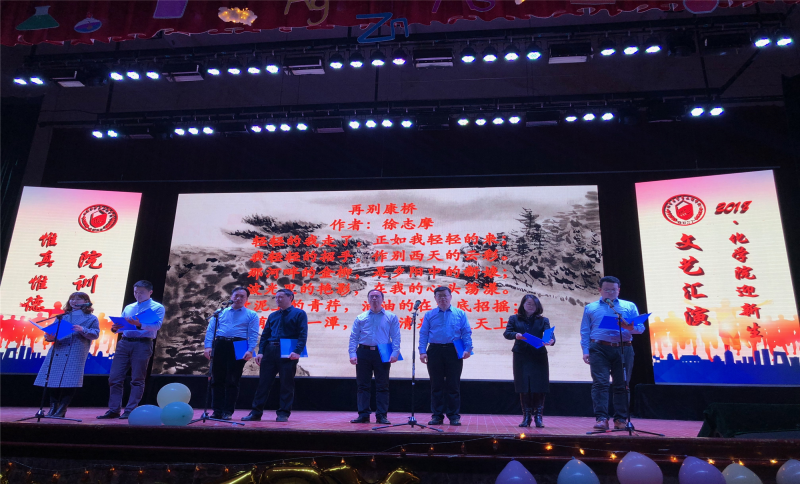 经过精心准备,汇演共分三大篇章17个节目。其中,化学公司党政领导干部和教师代表准备的新《再别康桥》,有机化学、物理化学教研室的诗朗诵《咏梅》、《我是科大人》,化学教研室的《海草舞》,基础实验中心的民族舞《山楂树》以及重点实验室、基础化学教研室、创新学科中心等带来的合唱串烧,引发了现场阵阵掌声。汇演现场,精彩的节目展现了化院教师立德树人的精神风貌和化院学子朝气蓬勃的个人风采。