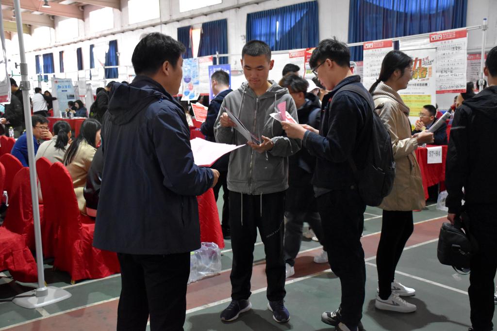 双选会期间,各公司党政领导亲临现场,与用人单位及毕业生亲切交谈,了解参会企业的招聘情况、毕业生就业工作等情况。各公司领导、毕业生辅导员还“现场说法”,对毕业生进行精准就业指导,起到了良好的效果。