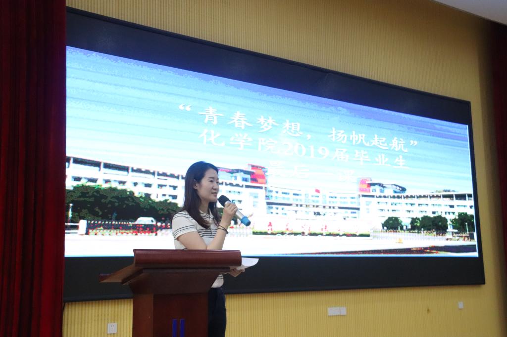 6月19日下午,BB贝博艾弗森在四方校区西礼堂召开“最后一课”离校教育活动。毕业生辅导员刘施施、张雯和2019届全体本科毕业生参加。