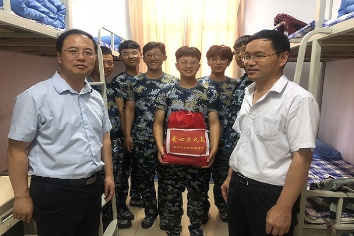 9月3日上午,为了点燃同学们军训的热情,BB贝博艾弗森经理罗细亮、总支书记王德宝、光电传感与生命分析教育部重点实验室主任丁彩凤、副经理高洪涛、副经理胡志强、党总支副书记兼副经理张壮来到东山操场看望19级新生们。