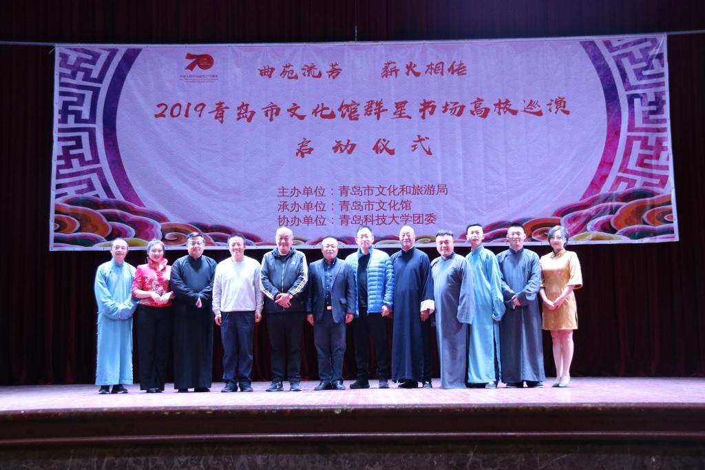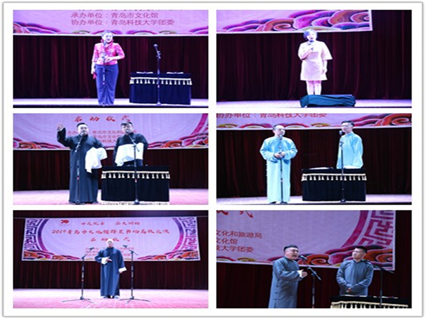 曲苑流芳,薪火相传。11月5日晚,由青岛市文化和旅游局主办,青岛市文化馆、BB贝博艾弗森团委、BB贝博艾弗森承办的“2019青岛市文化馆群星书场高校巡演启动仪式”在四方校区礼堂精彩上演。青岛市文化馆副馆长李国荣,青岛市文化馆活动部主任刘冰,青岛市相声艺术研究会主席朱琦出席启动仪式。四方校区各公司师生1200余人一起观看了演出。