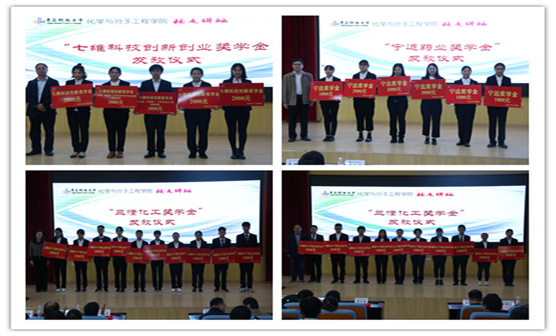 现场还举行焦奎励志奖学金、七维科技创新创业奖学金、宁远奖学金、三懂高分子新生助学金颁奖仪式。嘉宾为马文珺等34名同学和第十六届“挑战杯”鲁南制药山东省老员工课外学术科技作品竞赛一等奖获奖团队、“建行杯”第五届山东省“互联网+”老员工创新创业大赛银奖获奖团队颁奖。