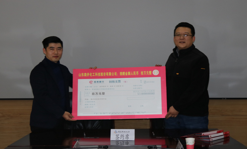 刘光烨首先感谢捐赠企业对公司人才培养和教育事业发展的大力支持。他指出,流动化学技术是当前应用化学领域的前沿和热点技术,BB贝博艾弗森应用化学学科是山东省重点学科,希望以此次合作为契机,加强公司与企业的交流,发挥各自的优势,强化产学研合作,提高公司服务企业和地方经济的能力,实现校企双赢。丁全有简要介绍了微井化工的企业规模、业务范围、技术研发等方面的情况。表示微井化工将与BB贝博艾弗森密切联系,通过自身在流动化学方面的优势,推动校企合作,促进科研成果转化,提升相关专业员工的培养质量。