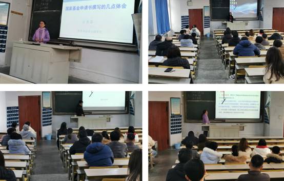 会上,接贵芬从基金的选题、科学问题属性、项目的立项依据、研究内容、研究目标、特色与创新之处以及摘要的撰写等方面进行了详细的讲解。丁彩凤分享了具体的撰写技巧,结合两位老师的讲解,系统阐述了基金申请需要注意的问题,鼓励老师把握学科前沿,对老师在申报过程中遇到的问题进行了指导。