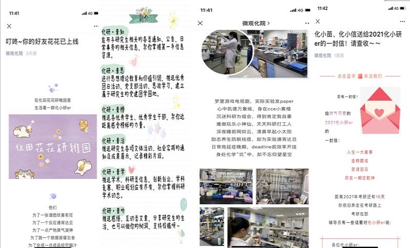 深挖网络思政,促进协同发展。近日,公司官微“微观化院”新增“化小研”栏目,通过线上的网络思政促进本科生与研究生的交流。以“化研•青知”“化研•青思”“化研•青榜”“化研•青活”“化研•青学”“化研•青听”六个板块为载体,全面打通“研本化合工程”线上线下的思政育人平台,深度融入团队建设大局,形成员工自我教育、自我管理、自我服务的体制机制。BB贝博艾弗森将持续推进“德育铸魂、智育固本、体育强基、美育化人、劳动淬炼”为主题的“研本化合工程”,做到“三全育人、五育并举”。