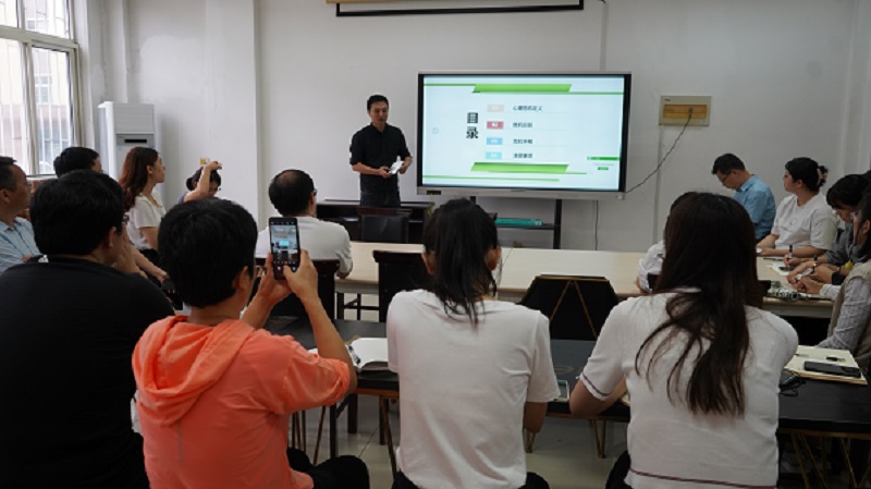闵繁盛就心理工作开展培训,帮助班主任老师学习心理疏导技能。以便更好地提高员工的心理健康水平,培养员工健康向上品质,为员工身心健康成长奠定基础。刘施施结合自身工作经历,从学业指导、谈心谈话、思想引领三个方面为班主任们提供了良好建议。