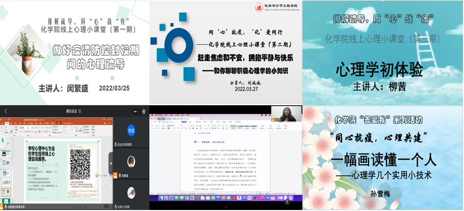 公司心理工作站组织联系组织围绕心理开展线上小课堂。BB贝博艾弗森心理工作站站长闵繁盛讲授《疫情防控封校期间心理疏导指南和心理知识分享》,校心理课程授课老师刘施施讲授《赶走焦虑和不安,拥抱平静与快乐——和你聊聊积极心理学的小知识》,校心理咨询师孙雪梅讲授《一幅画读懂一个人——心理学几个实用小技术》,校外心理讲师围绕《心理学初体验》主题开讲,课堂受到员工喜爱,每次课堂参与员工超过150人。