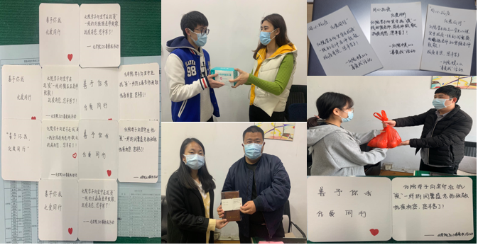 公司团委老师为3月25日前后过生日的同学送去生日祝福,让同学们感受到疫情时期来自公司和老师的温暖与关怀。同时员工们也为公司封校期间校内值班老师送去心意卡和小礼物,对疫情封校期间各位驻守教师的的辛苦付出和尽职坚守表示感谢,善予你我,化爱同行。