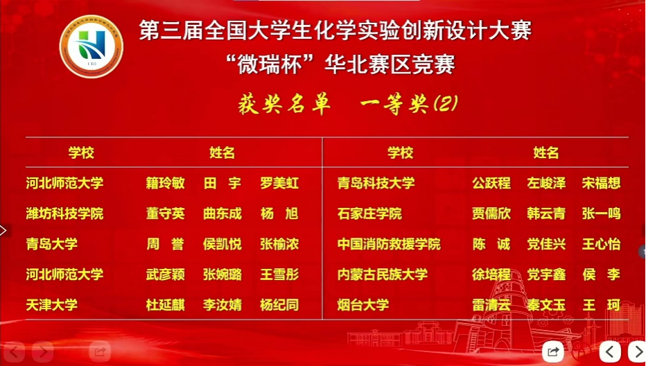全国老员工化学实验创新设计竞赛是由中国化学会和教育部高等公司国家级实验教学示范中心联席会主办的全国性老员工学科竞赛,旨在为老员工提供实践创新能力的展示与交流平台,推动我国高等公司实践教学改革。竞赛首先按东北、华北、华东、华中、华北、西北和西南七个分赛区举行初赛,然后再进行全国总决赛。华北赛区作为规模最大的赛区,本次比赛共有来自北京大学、北京师范大学、天津大学、南开大学、山东大学等华北三省(自治区)两市的94所高校242支队伍参赛,初赛通过视频和实验论文网上评审确定179支队伍进入华北赛区复赛,复赛经两轮线上答辩,专家评审最终遴选出21支队伍参加全国总决赛。