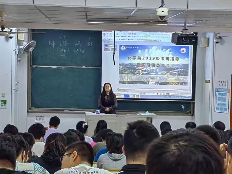 10月1日上午,BB贝博艾弗森在2教101和2教115组织开展两场2019级考研指导暨实习动员大会。光电传感与生命分析教育部重点实验室主任丁彩凤、BB贝博艾弗森副经理高洪涛、党委副书记兼副经理杨小明、化学教研室主任温永红、应化教研室主任李东祥和2019级全体同学参加会议,会议由2019级辅导员刘施施、昝祺祺主持。