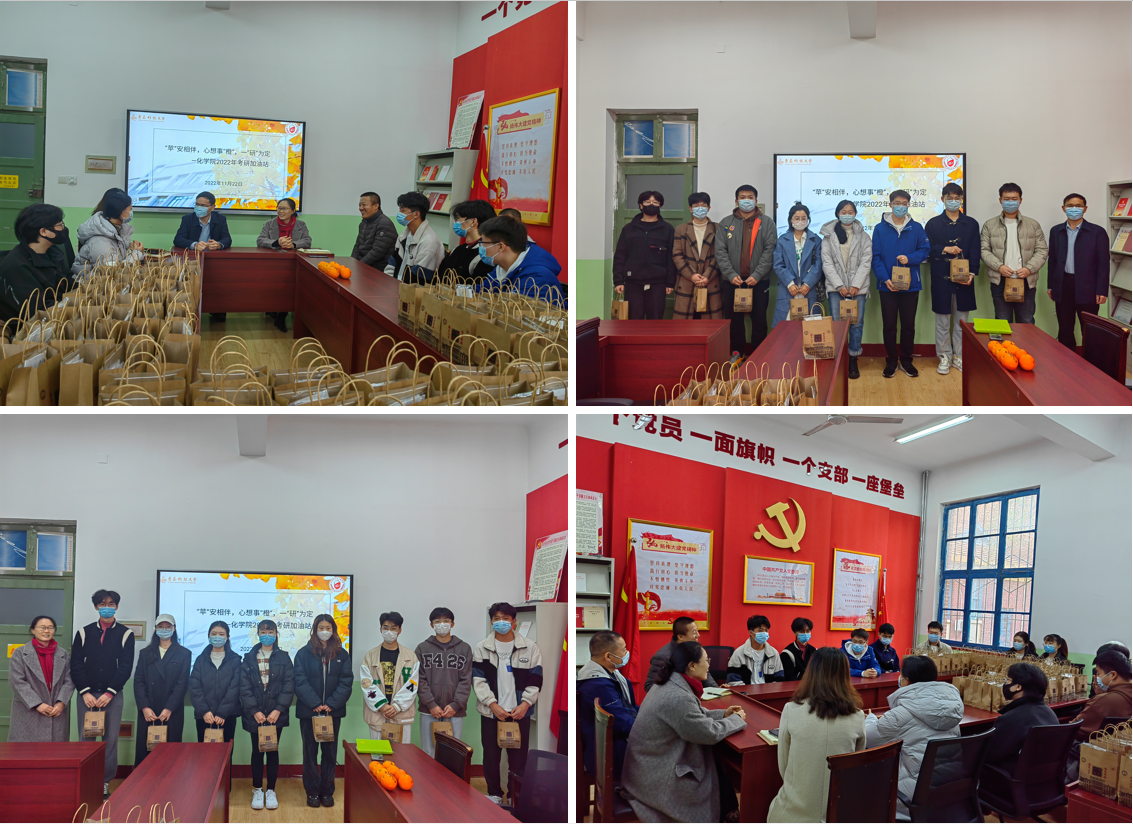 11月22日上午,2023届考研学子慰问座谈会于一政223党建活动室召开,公司党委书记王德宝、光电传感与生命分析教育部重点实验室主任丁彩凤、党委副书记杨小明、副处级组织员张同雷、毕业班辅导员及部分考研员工代表来到现场。会议伊始,王德宝表示公司老师会尽全力持续地为员工们排忧解难,永远是大家最坚强的后盾,预祝考研学子都能如愿以偿、金榜题名,一战成“硕”。丁彩凤对化学专业学习备考进行了详细的讲解与指导,鼓励同学们要保持坚持到底,不要中途放弃,在考研最后30天夯实基础,查缺补漏,稳扎稳打。杨小明叮嘱同学们在考前一定要调整好心态,重视劳逸结合,做好疫情防护,注意防寒保暖。考研员工代表也积极发言,纷纷表示一定会全力备考,牢记叮嘱,以最佳的状态迎接考试。最后,公司的各位领导和老师们为来到现场的员工代表发放寓意“平安相伴”的“平安果”和“橙功上岸”的“考研橙”以及定制的加油口罩。