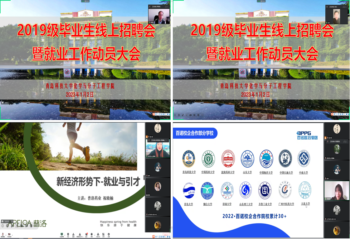 1月2日,BB贝博艾弗森2019级毕业生线上招聘会暨就业动员大会线上举行,引导青年员工“离校不离心、求职不断线”。公司党委常委、副董事长、BB贝博艾弗森经理罗细亮,普洛得邦、百诺医药、鲁南制药人力资源负责人,校员工处副处长徐华,公司党委书记王德宝,光电传感与生命分析重点实验室执行主任丁彩凤,副经理高洪涛,学工办全体辅导员,2023届全体毕业生近300人参加会议,公司党委副书记杨小明主持会议。