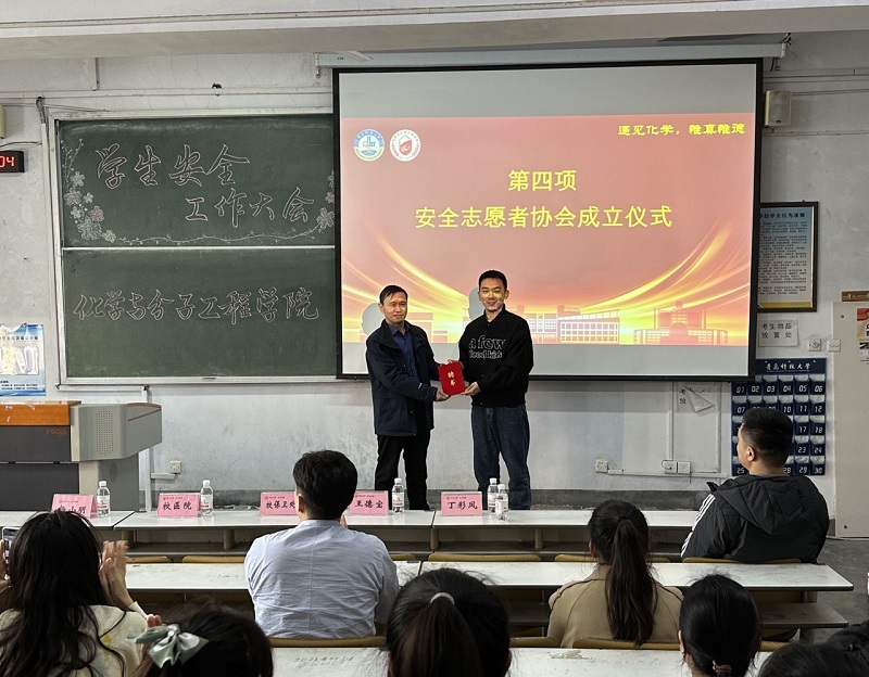 王德宝向BB贝博艾弗森安全志愿协会志愿者代表颁发聘书并讲话。王德宝指出:安全工作压倒一切,没有安全没有一切,班长团支书要牢固树立、带头践行总体安全理念。安全志愿者代表吴琼唯代表全体志愿者发言,安全志愿者代表王磊宣读了《BB贝博艾弗森校园安全倡议书》。会上还观看了实验室安全、校园安全的视频纪录片。