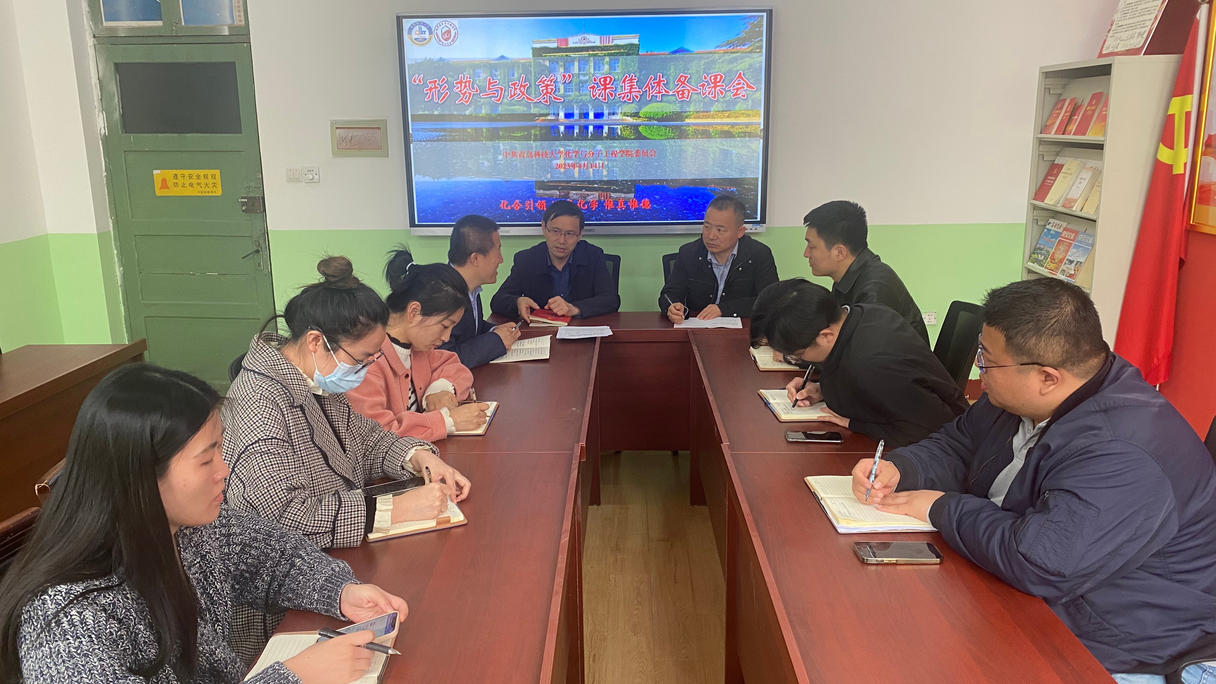 4月14日,公司党委在公司党建活动室召开2022-2023学年度第二学期“形势与政策”课集体备课会。公司党委书记王德宝、公司专职组织员张同雷、党委副书记兼副经理杨小明、全体“形势与政策”课授课讲师参加集体备课会。