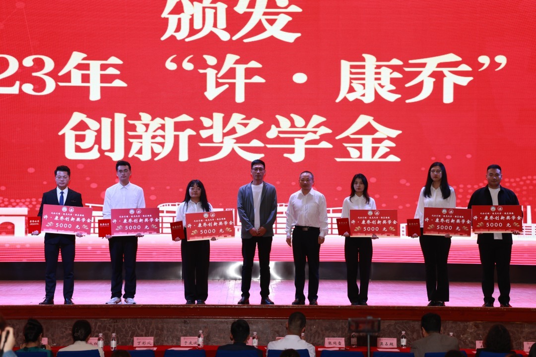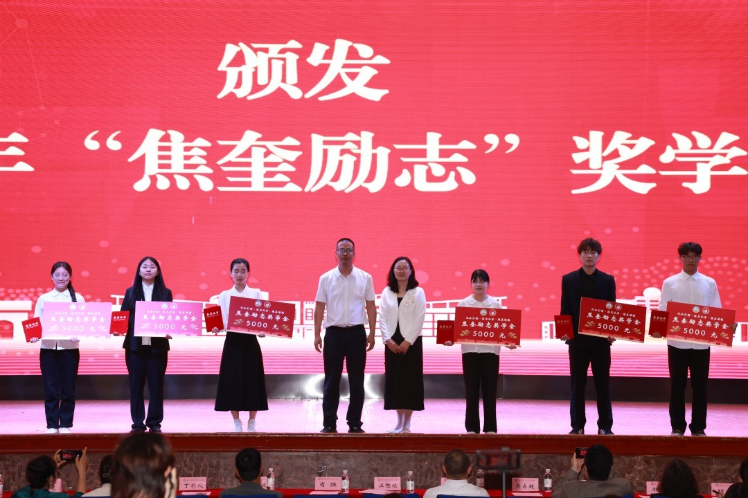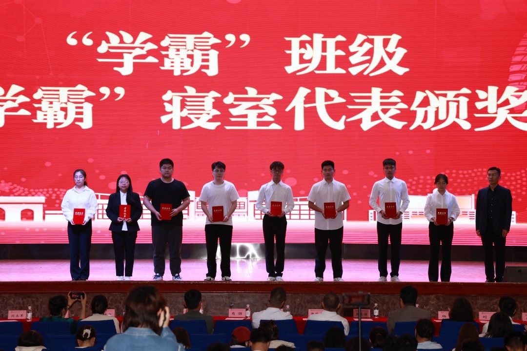 随后,于友波、张同雷为获得2023年“许·康乔”创新奖学金的同学颁奖,汪恕欣、丁彩凤为获得“焦奎”励志奖学金的同学颁奖,肖强为学霸班级和学霸寝室代表颁奖。