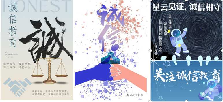 以诚促信,照亮诚信之路。面向全院员工举办“立诚于心,树信于人”校园诚信作品征集活动,同辈群体的宣传示范扩展了诚信教育宣传的广度。同时,开展资助育人主题征文比赛,讲好“科大资助育人故事”,激励受助员工奋发自强、励志成才、感恩奉献。
