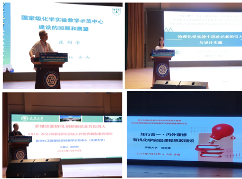 大赛期间,同时举行了“山东省化学实验教学与实验室建设研讨会”。来自省内外高校的三十余位专家出席了研讨会,南京大学、复旦大学、天津大学、山东大学、烟台大学等五所高校的专家围绕实验教学改革和实验室建设作了主题报告,并与参会代表进行了深入的现场交流。