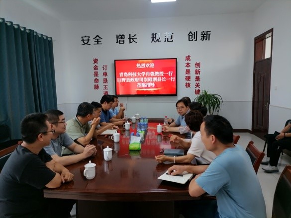 肖强一行先后考察了科源生化制剂、华鑫香料、新东方日化、帝捷化工、现代化学及统防生物等六家企业,并与企业负责人、技术和人力骨干等进行座谈。司崇殿对大家的到来表示欢迎,并介绍了巨野县产业布局和发展状况。肖强介绍了BB贝博艾弗森近年来的发展情况及学科、科研优势,希望加强交流对接,推动校企深入合作。