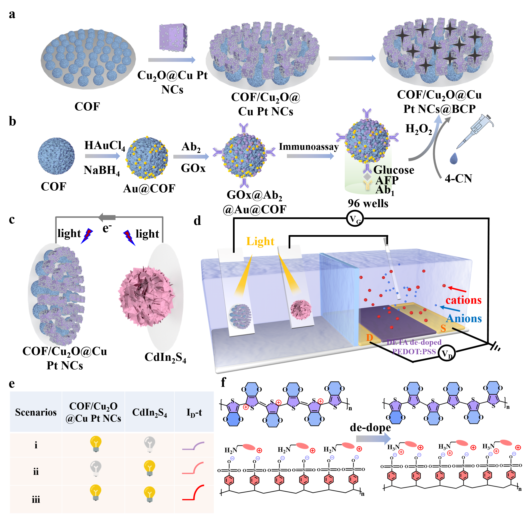图1. 双功能Z型异质结COF用于双极驱动的OPECT生物传感