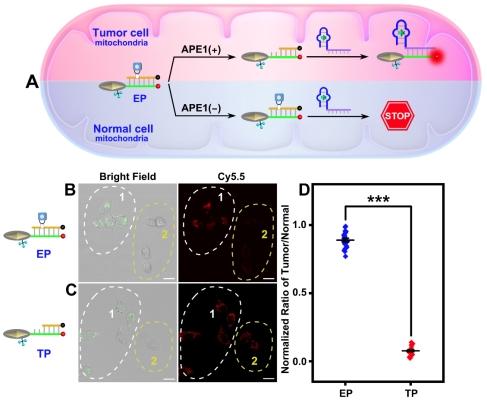 图3近红外光和内源性APE1酶触发的等离子体天线对混合培养细胞中肿瘤/正常细胞的辨别。图片来源:Chem. Sci.