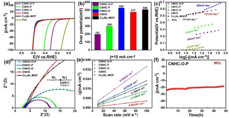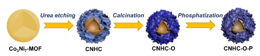 为了解决这一难题,应化实验201班本科生李纯朴同学自大二暑假开始进入BB贝博艾弗森肖振宇、王磊教授课题组进行科研攻关,采用尿素刻蚀和分步磷化工艺成功制备了富含缺陷的双壳过渡金属磷化物微球(CNHC-O-P)。CNHC-O-P具有的独特的富含缺陷的双壳结构可以调整材料的电子结构,增加它们的本征活性,并为提高HER性能提供更容易接近的活性中心。因此,优化后的催化剂在宽pH范围内表现出优异的析氢性能。这项工作为在宽pH范围内制备高性能、低成本的HER催化剂提供了一种潜在的策略。