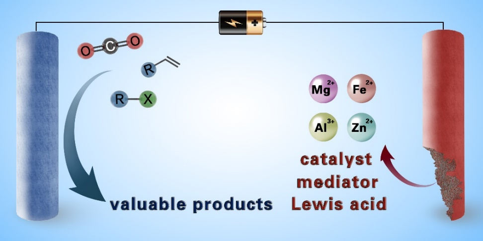 有机电合成作为一种绿色高效的合成方法,已成为有机合成研究的热点并在许多领域中得到了广泛应用。最近,牺牲阳极的电还原反应受到广泛关注,该类反应一般使用具有较低氧化电势的廉价金属(如锌、铁、镁等)作为阳极,避免了反应物、活性中间体以及产物在阳极被氧化分解,同时牺牲阳极产生的金属离子可以作为Lewis酸活化底物,也可以作为反应的促进剂。相较于传统的合成方法,牺牲阳极的电还原反应具有条件温和、选择性高、反应活性多样等优点。