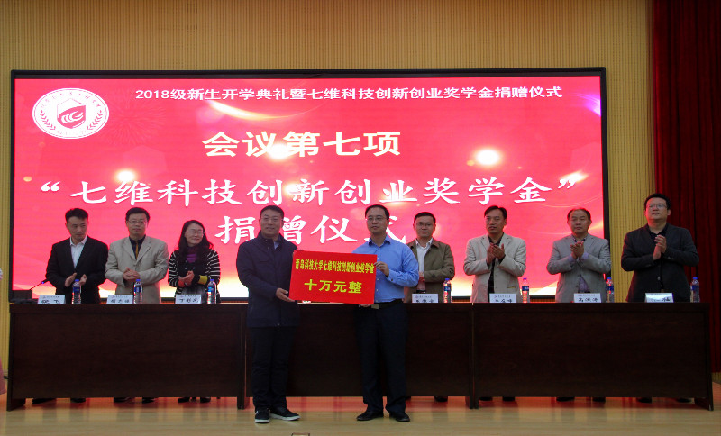 10月16日下午,BB贝博艾弗森在四方校区讲学厅举行2018级本科生开学典礼暨“七维科技”创新创业奖学金捐赠仪式。经理罗细亮,党总支书记王德宝,97级员工山东七维新材料有限公司董事长姜凤冕,以及公司党政领导、教师代表、辅导员和全体员工参加了此次活动。