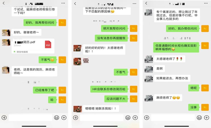 寒假期间,BB贝博艾弗森研究生辅导员程丽与多位有就业困难的同学进行一对一交流,根据毕业生个人意愿为其推荐最佳就业岗位信息,解决就业困难毕业生最心切的问题。