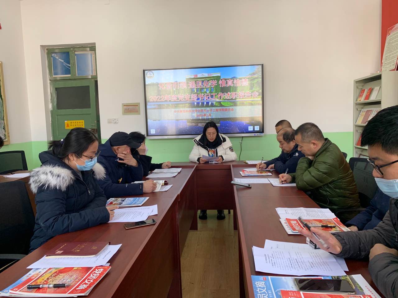 化学、应用化学、分子科学与工程三个专业教研室党支部、有机化学基础教研室党支部、山东省党建样板支部基础化学实验中心党支部、本科生第一党支部、研究生第一党支部等七个单位依次进行现场述职,基础化学原理教研室党支部等八个党支部进行书面述职。各党支部书记分别从基础党务工作、“一支部一特色”“一专业一亮点”开展情况、工作中存在的问题和工作的下步打算四个方面全面、系统、深刻总结2022年度党支部工作情况。