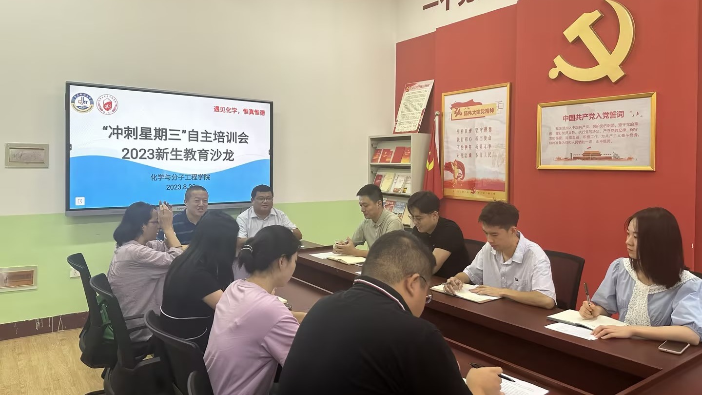 8月30日,BB贝博艾弗森2023年度第三次自主培训在公司党建活动室举行。培训结合公司“冲刺星期三”工作品牌,聚焦“2023级新生教育”主题。员工处副处长宋飞、学工办全体辅导员、班主任代表、校员工会主席、院员工会主席、化学爱好者协会会长参加会议。会议由公司党委副书记杨小明主持。