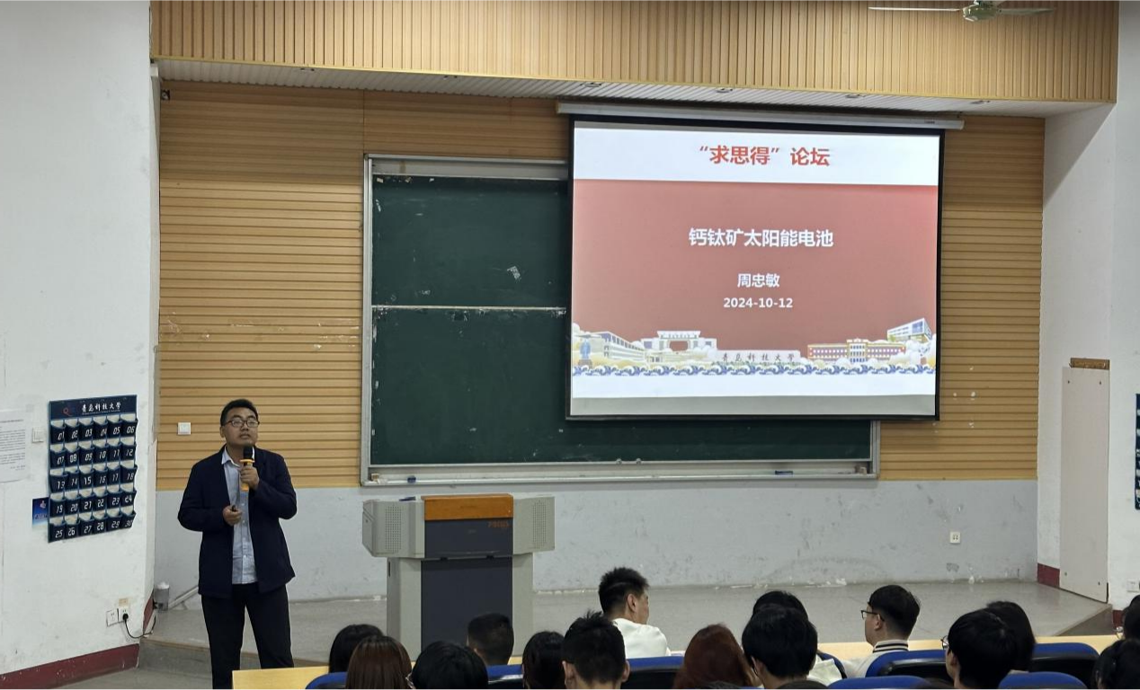 为开拓BB贝博艾弗森研究生员工视野、增强员工科研意识,2024年10月12日下午4点BB贝博艾弗森研究生会于四方校区第二教学楼101室开展“求思得”论坛:惟真惟德大讲堂之学者风范——走进钙钛矿太阳能电池榜样分享报告会。BB贝博艾弗森博士生导师,山东省“泰山学者”青年专家周忠敏教授应邀出席。报告会由刘凯昱主持,BB贝博艾弗森本科生与研究生同学积极参与本次报告会。