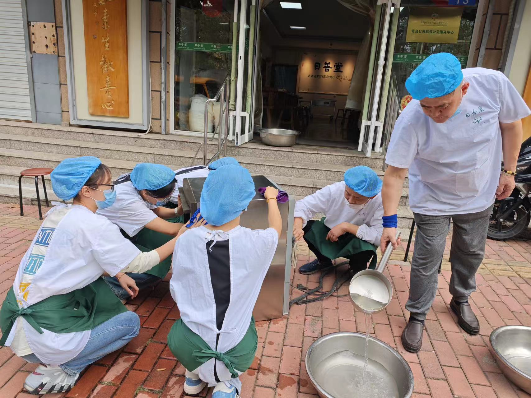 日善堂是一家主要服务于空巢、孤寡、残障等老年及社会弱势群体的非盈利的公益餐厅,践行“成为保护社会脆弱群体的奉献者,共同塑造爱与被爱的美好世界”的使命。首先,在日善堂值班店长的带领之下,志愿者们深入了解日善堂的建设初心和运营模式。随后,志愿者们协助值班服务团队开展清理卫生、摆放餐具、洗菜备菜等准备工作,共同为老人准备营养美味的午餐。