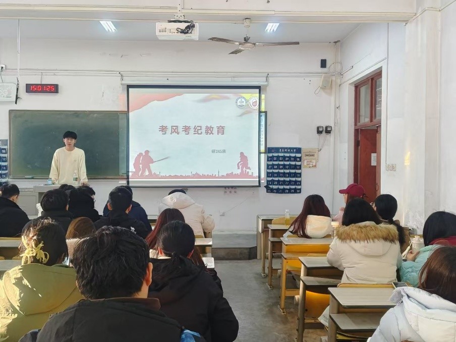 为进一步加强研究生的学术诚信建设、考风考纪教育,引导员工树立正确的考试观念,提高诚信意识,在12月16日研究生骨干诚信教育结束后,BB贝博艾弗森研2024级各班近期通过多渠道、多形式开展考风考纪主题班会,倡导诚信应考。