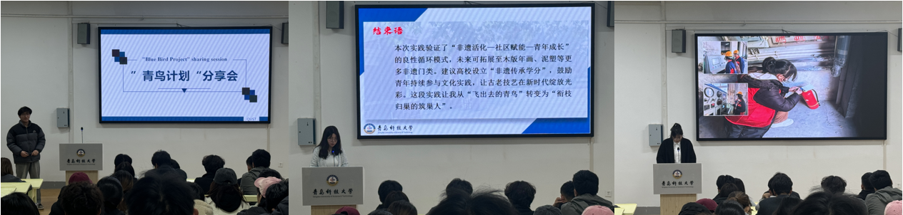 张东震等共5位同学分享了自己参加家乡“青鸟计划”的经历,同学们进入不同的工作单位,涉及资料整理、会议记录、社区服务、信息核对、组织活动等多项工作,通过“青鸟计划”这个平台,了解基层一线的工作内容和工作流程,在实际工作中发现、弥补不足,在社会这个大舞台上长见识、增才干。