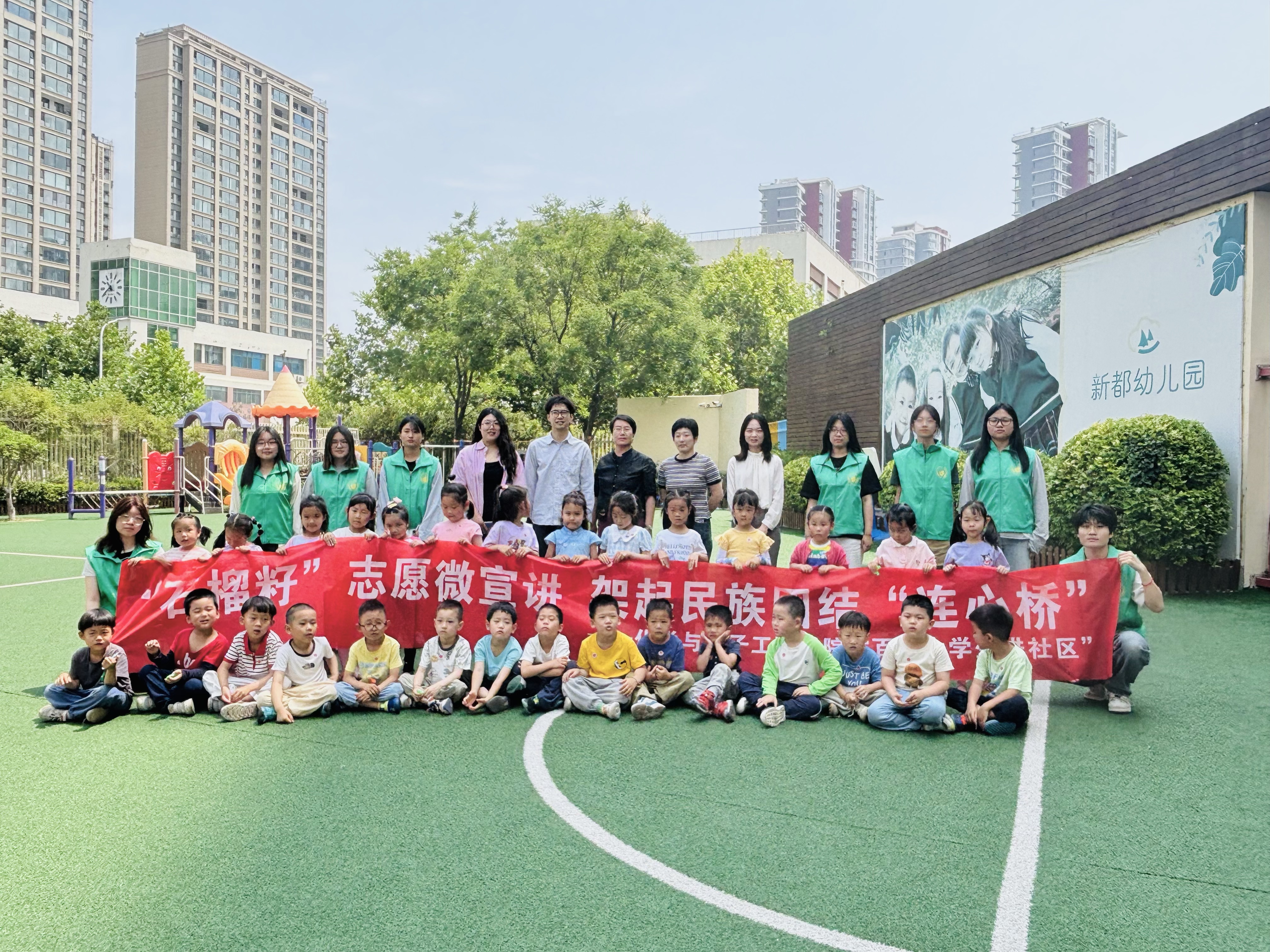 为深入贯彻落实习近平总书记关于加强和改进民族工作的重要思想和中央民族工作会议精神,6月6日,BB贝博艾弗森团委联合市北区新都幼儿园开展“石榴籽”志愿微宣讲 架起民族团结“连心桥”——百万老员工进社区活动。