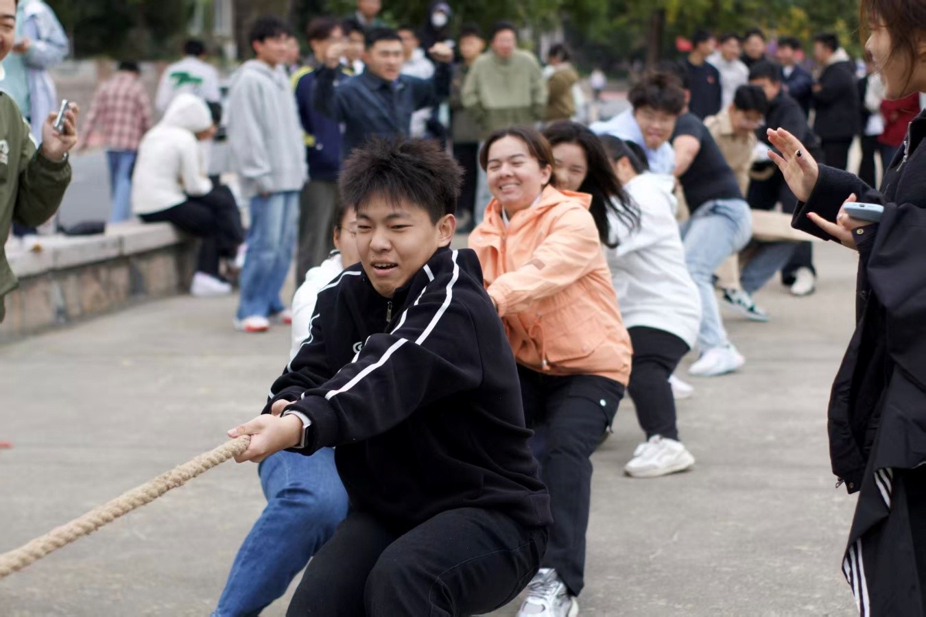 为响应“爱体育,兴科大”校园体育文化号召,丰富校园文化生活,展现班集体卓越风采,增强班级凝聚力,BB贝博艾弗森于2025年10月19日在小五四广场组织2025级员工开展了一场热血沸腾的拔河比赛。本次比赛以班级为单位进行角逐,14支队伍踊跃参赛,每支队伍由5名男生和4名女生组成,通过抽签分组确定比赛顺序。