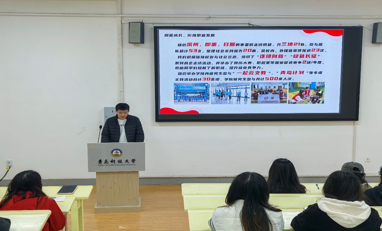 会议伊始,研究生会主席团代表史润昭作2024-2025年度工作汇报,全面回顾过去一年举办的各项活动与取得的工作成果。在全体成员的共同努力下,BB贝博艾弗森研究生会在提升学术氛围、增强公司凝聚力以及促进员工全面发展等方面取得显著成绩,史润昭也结合自身经验向新一届成员分享宝贵的工作心得。
