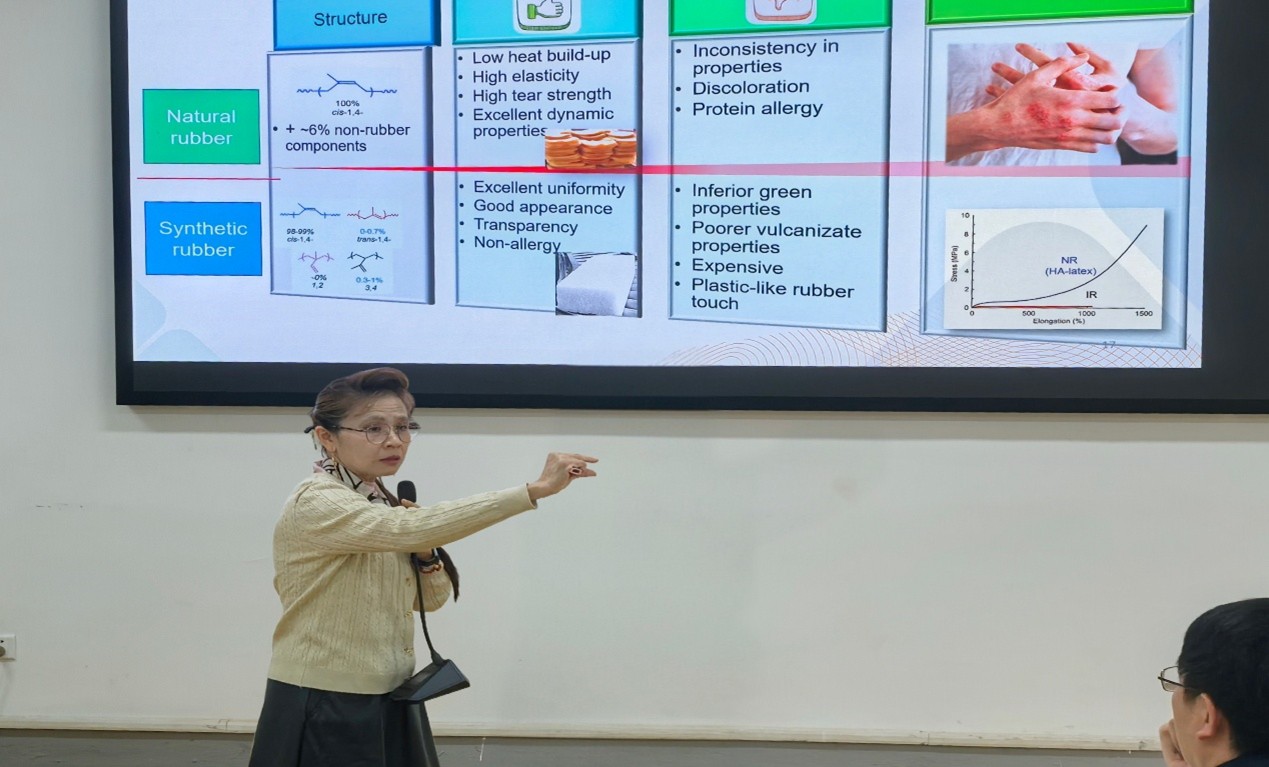 为促进国际化学术交流,帮助员工立足国际前沿、激发科研创新热情, 10月30号下午,BB贝博艾弗森在四方校区一政243室开展惟真惟德大讲堂之学者风范——天然橡胶与可持续材料。本次活动由BB贝博艾弗森研究生会协办,特邀泰国马希隆大学陳麗華教授(Jitladda Sakdapipanich),BB贝博艾弗森本科生与研究生同学积极参与。