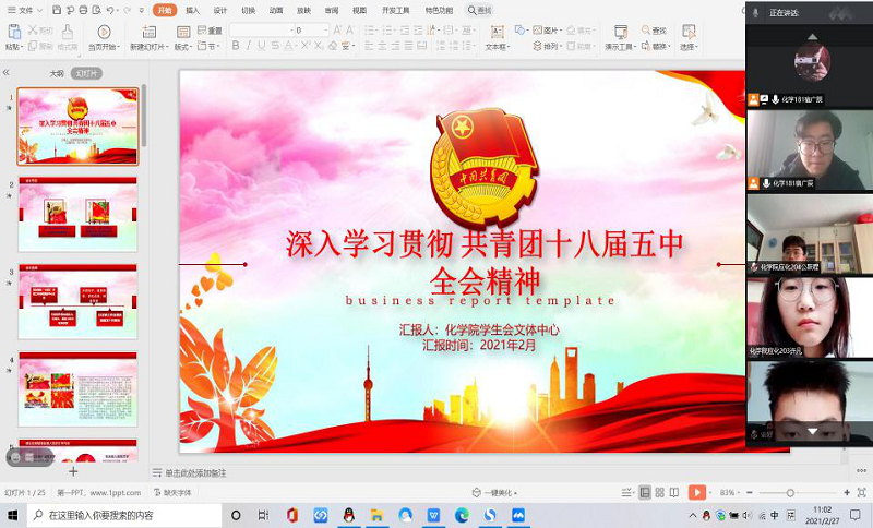 2021年2月18日,BB贝博艾弗森文体中心、学术中心分别举行“关于组织全校团员青年深入学习贯彻,共青团十八届五中全会精神”线上学习会议。